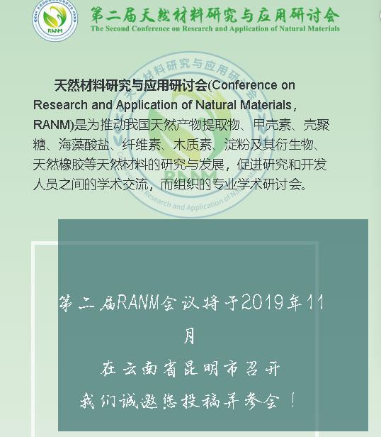 2019第二届天然材料研究与应用研讨会,定于2019年11月8日至10日在云南省昆明市召开